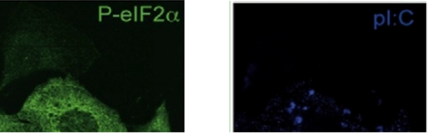 K1抗體用于檢測MEFs處理過的poly I:C(圖.右),可以檢測到dsRNA與及磷酸化的eIF2a.( 圖.左)J2單克隆抗體。