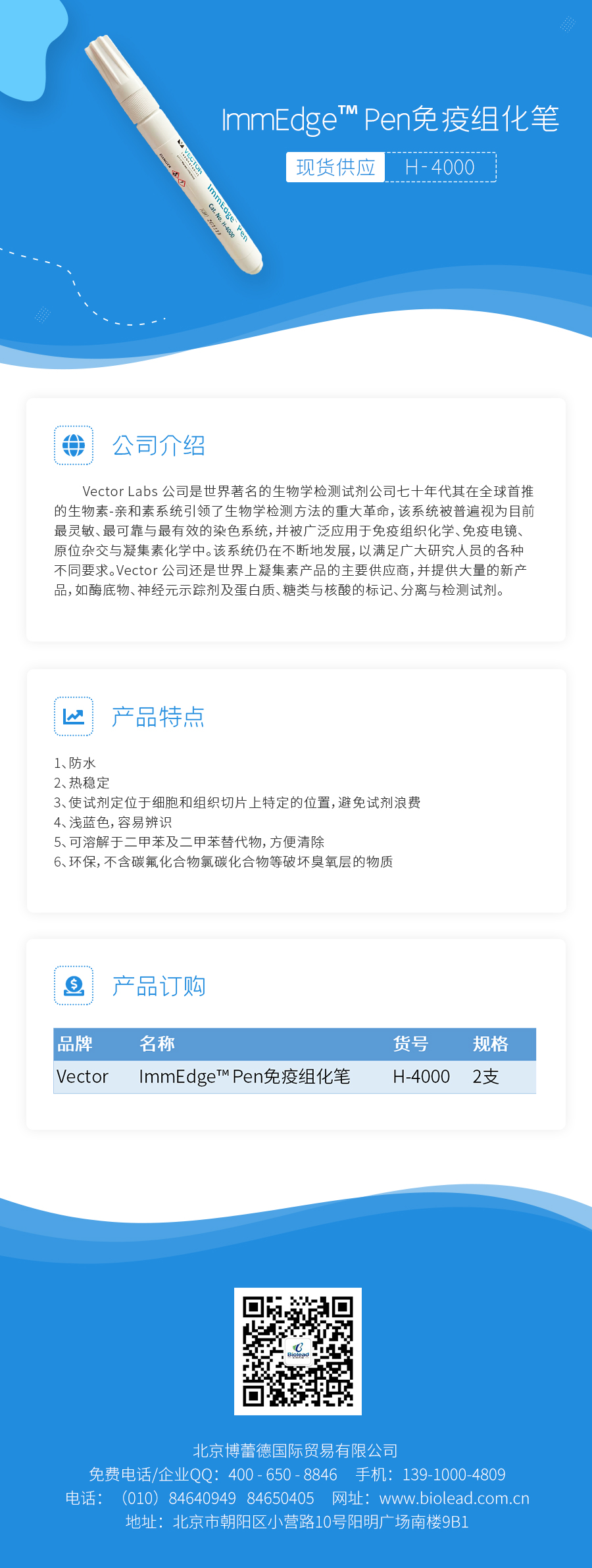 Vector提供的ImmEdge™免疫組化筆優(yōu)于一般的PAP筆,可用于免疫組織化學(xué)和原位雜交實(shí)驗(yàn)。該免疫組化筆劃出的耐熱、疏水的分界線,可保證試劑在被畫圈內(nèi)不易流失,當(dāng)一塊載玻片上有多個(gè)切片時(shí)可避免發(fā)生試劑混雜。淡藍(lán)色的疏水線不溶于乙醇和丙酮,可被二甲苯或二甲苯替代物清除。該免疫組化筆可以與酶系統(tǒng)/熒光系統(tǒng)兼容。ImmEdge™免疫組化筆為環(huán)境友好型,不含有經(jīng)蒙特利爾議定書和歐盟理事會確認(rèn)的耗蝕臭氧層成分,尤其不含碳氟化合物和氯碳化合物。