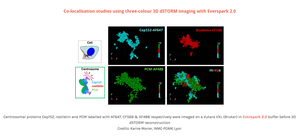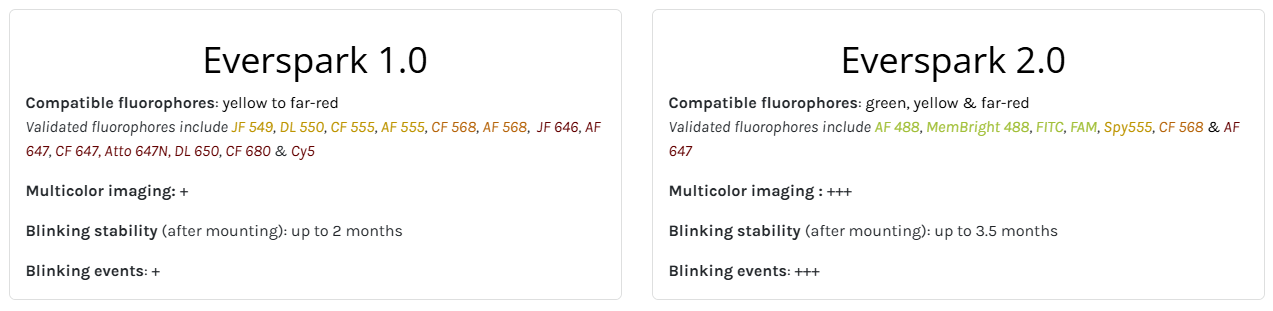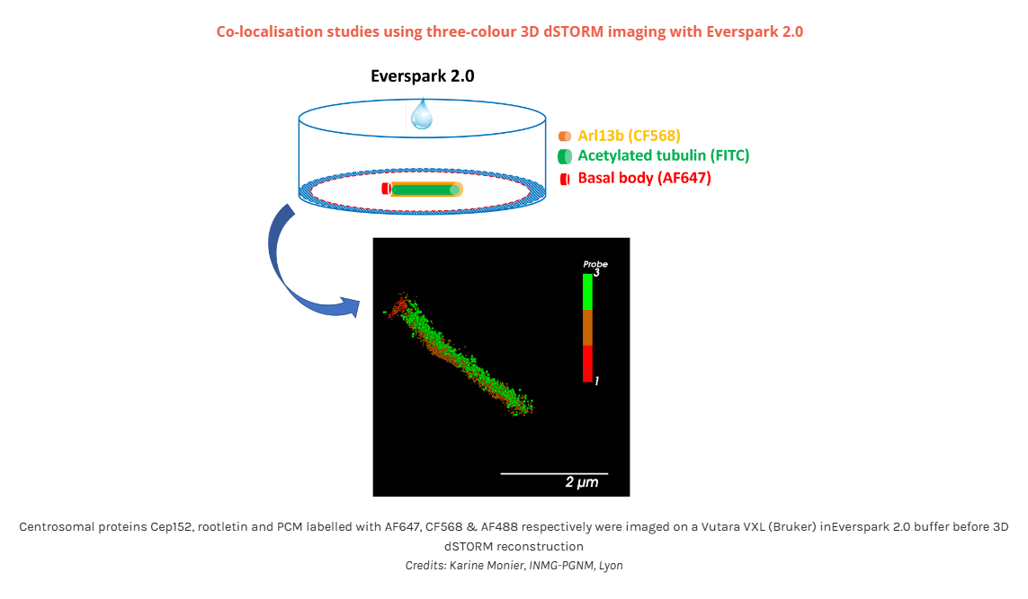 NEW ! Discover the newly-developed Everspark 2.0 also compatible with green fluorophores (i.e. AF488) for improved resolution in 3-colour dSTORM microscopy.