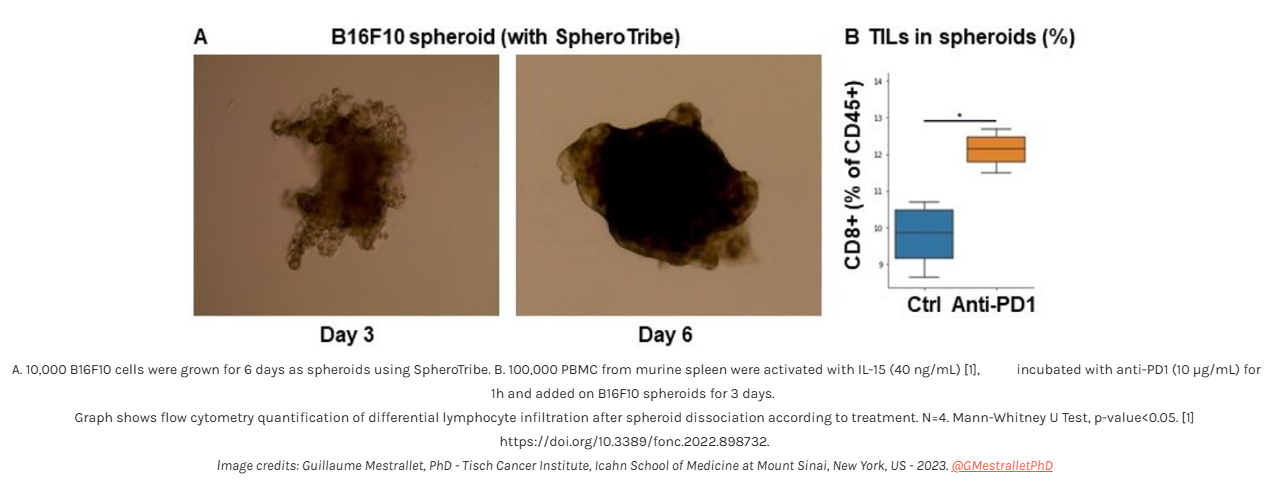 Once spheroids have grown to your desired size, you can use them for any kind of assay according to your regular workflow. The SpheroTribe solution can be readily washed off, leaving a spheroid available for other tests at any stage of your protocol.