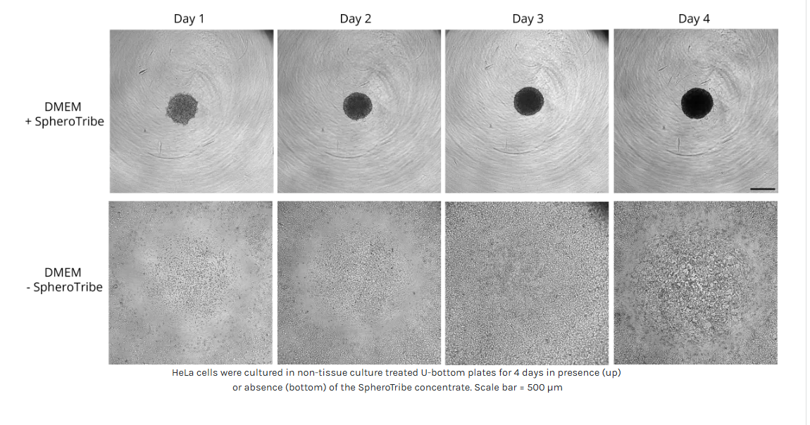 SpheroTribe promotes and maintains cell aggregation in HeLa cells