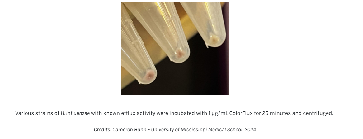 ColorFlux is a fast, reliable and non-toxic solution for assessing bacterial efflux for your research on antibiotic resistance. This coloured fluorescent compound quickly accumulates within bacteria as a function of their efflux pump activity. Simply add ColorFlux to your bacteria and watch them change colour !