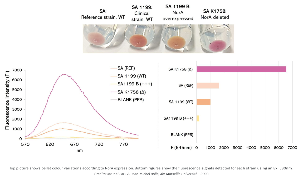 ColorFlux staining of NorA mutants in Staphylococcus aureus