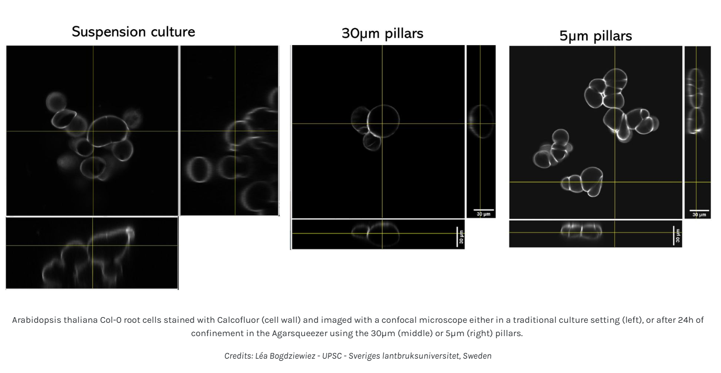 AgarSqueezer is a microscope slide chamber equipped with a molded agar-based compression system. Use it to apply an instant & homogeneous compression on your cells, and study their response to short and long-term confinement.