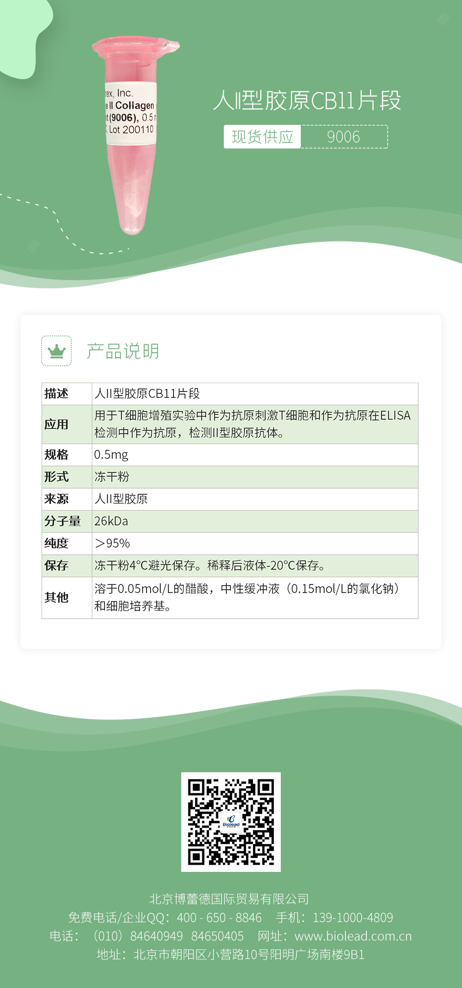 上一篇:Bovine CB11 Peptide of Type II Collagen, 0.5 mg, lyophilized